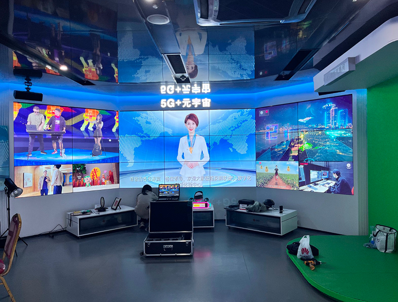 深圳市福田区某公司项目46寸液晶拼接屏(左右两边各3x2拼接,中间3x3拼接),5G+元宇宙数字展厅大屏完美亮...