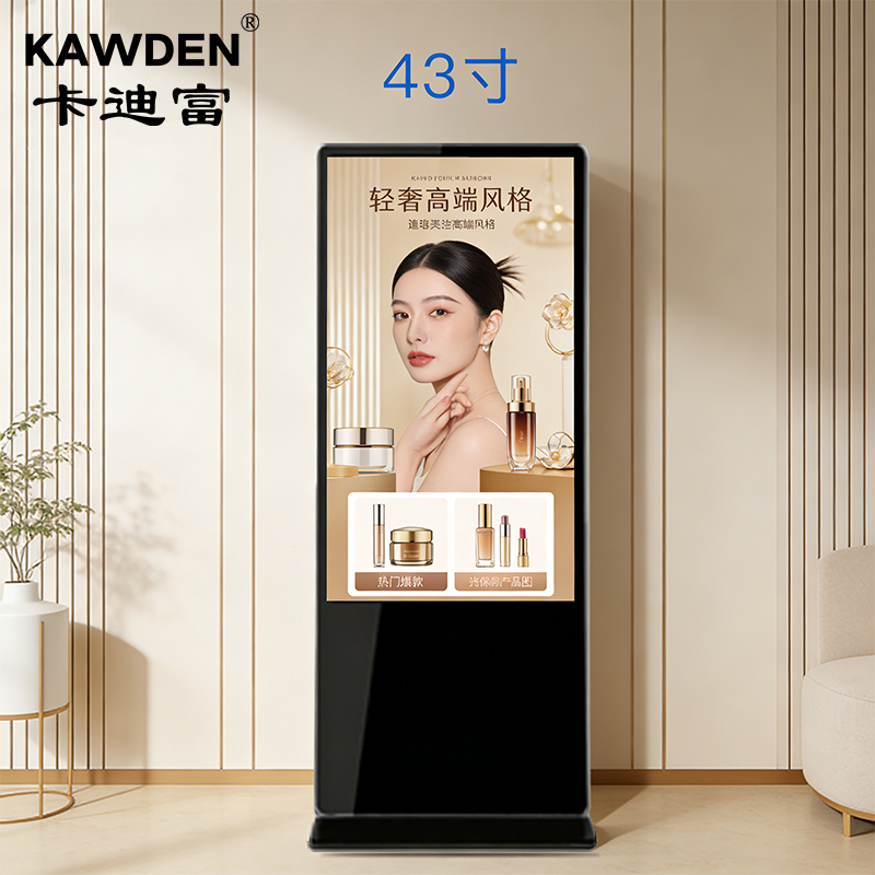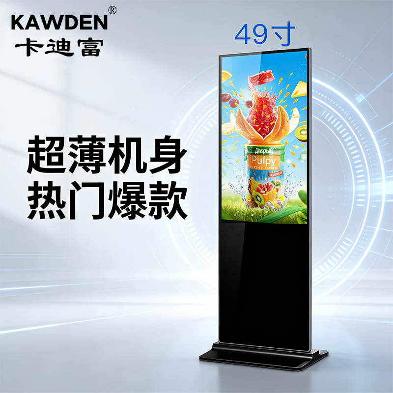 这里介绍55寸立式超薄广告机厂家卡迪富的单机版高清落地广告机产品功能介绍: