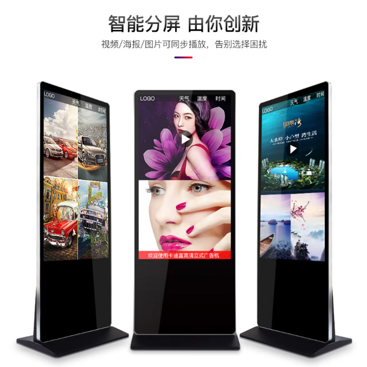 液晶广告机厂家顺达荣43/49/55/65寸立式广告机采用LCD显示器来播放视频广告,特别适合高端品牌的综合多媒体技术,向消费者传递全方位的产品信息、促销信息等。提升产品在销售终端的显现率和陈列效果,刺激冲动性购买。它放置于卖场产品旁边,能自动开启进行宣传。相比于其他传统媒体和促销方式,投入极低廉,性价比极高。