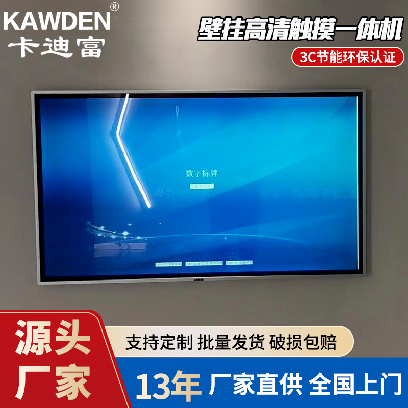 卡迪富壁挂98寸触摸屏一体机介绍 98寸触摸屏一体机的出现,弥补了目前大尺寸显示屏市场的空缺,可实现与当...