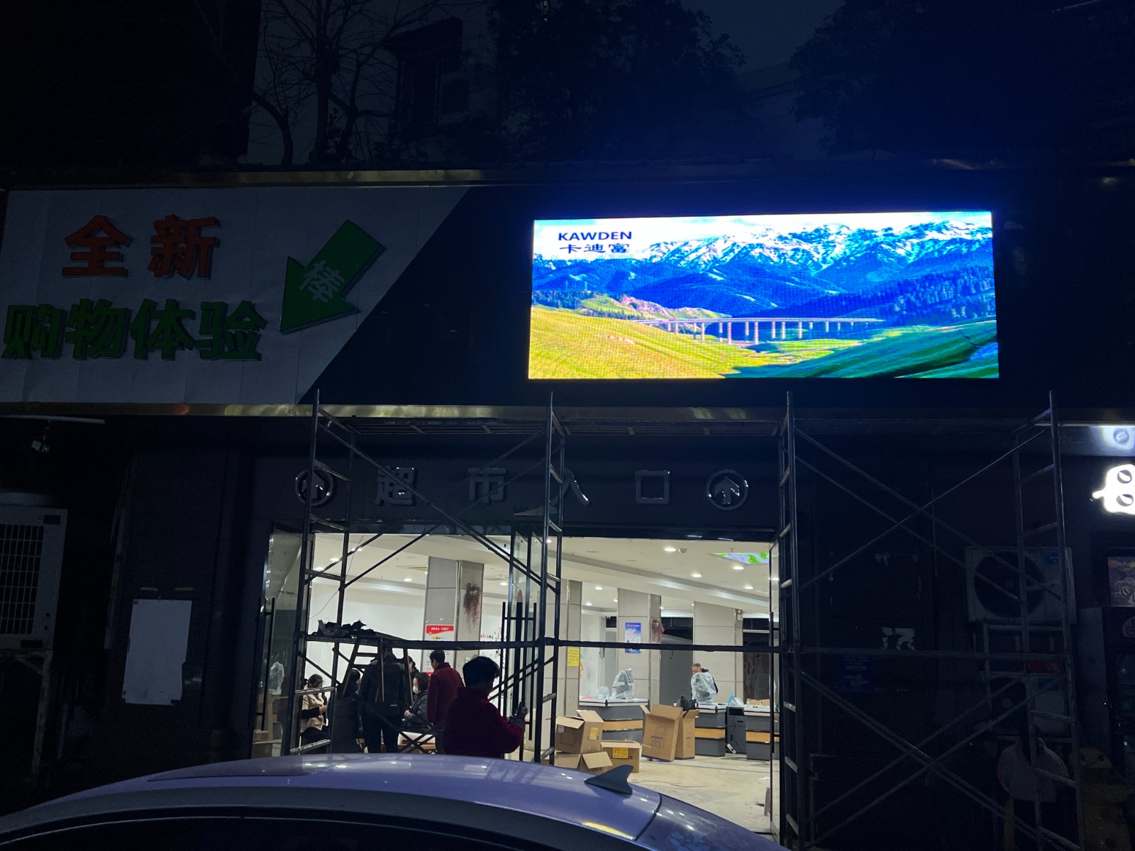 考虑到超市外立面的实际条件,卡迪富为爱乐购量身定制了壁挂式安装方案。这一设计不仅充分利用了垂直空间,避免了地面占用,还使得显示屏与建筑外观完美融合,提升了整体美观度。同时,壁挂结构便于根据超市的营销策略和节日氛围进行快速调整,灵活应对各种宣传需求。